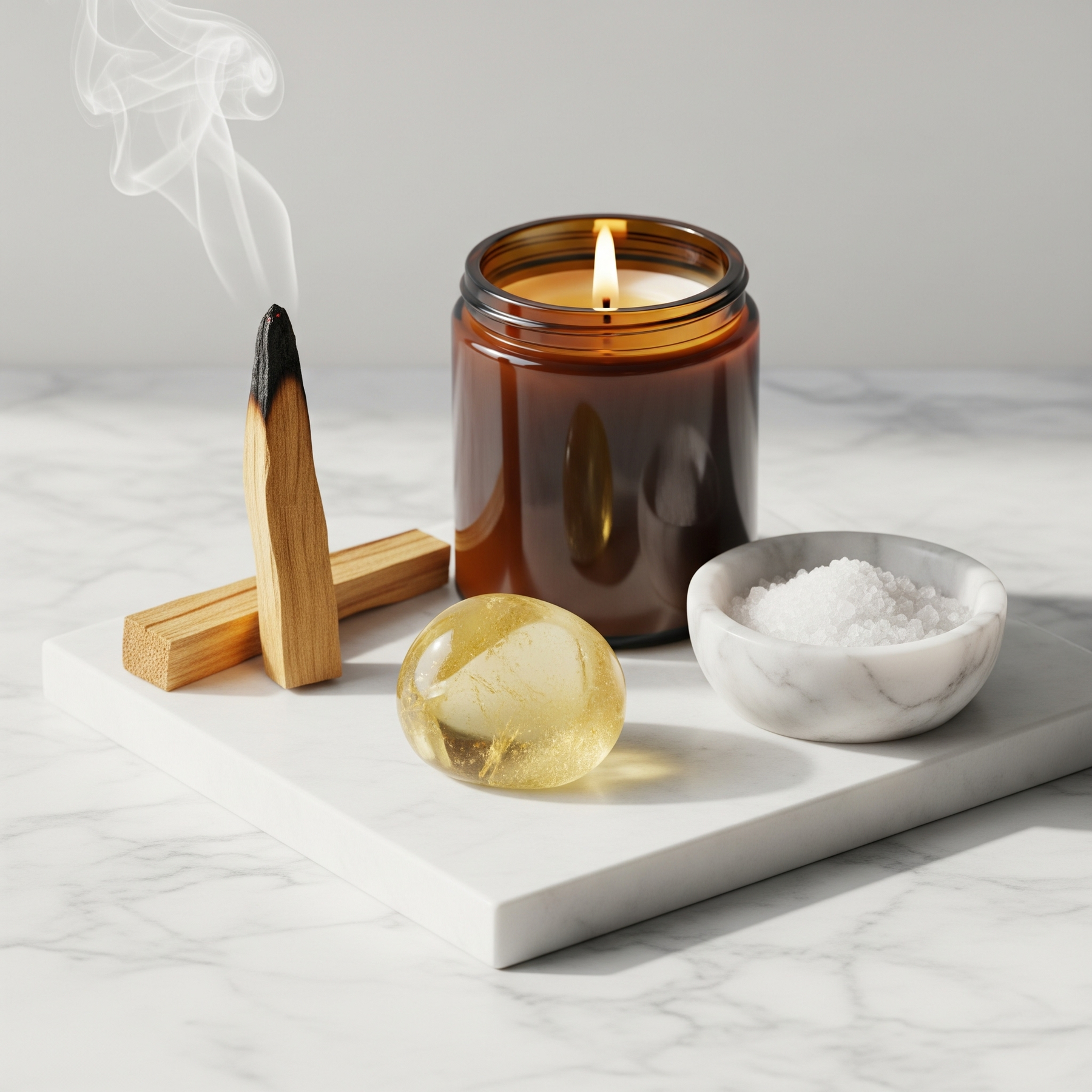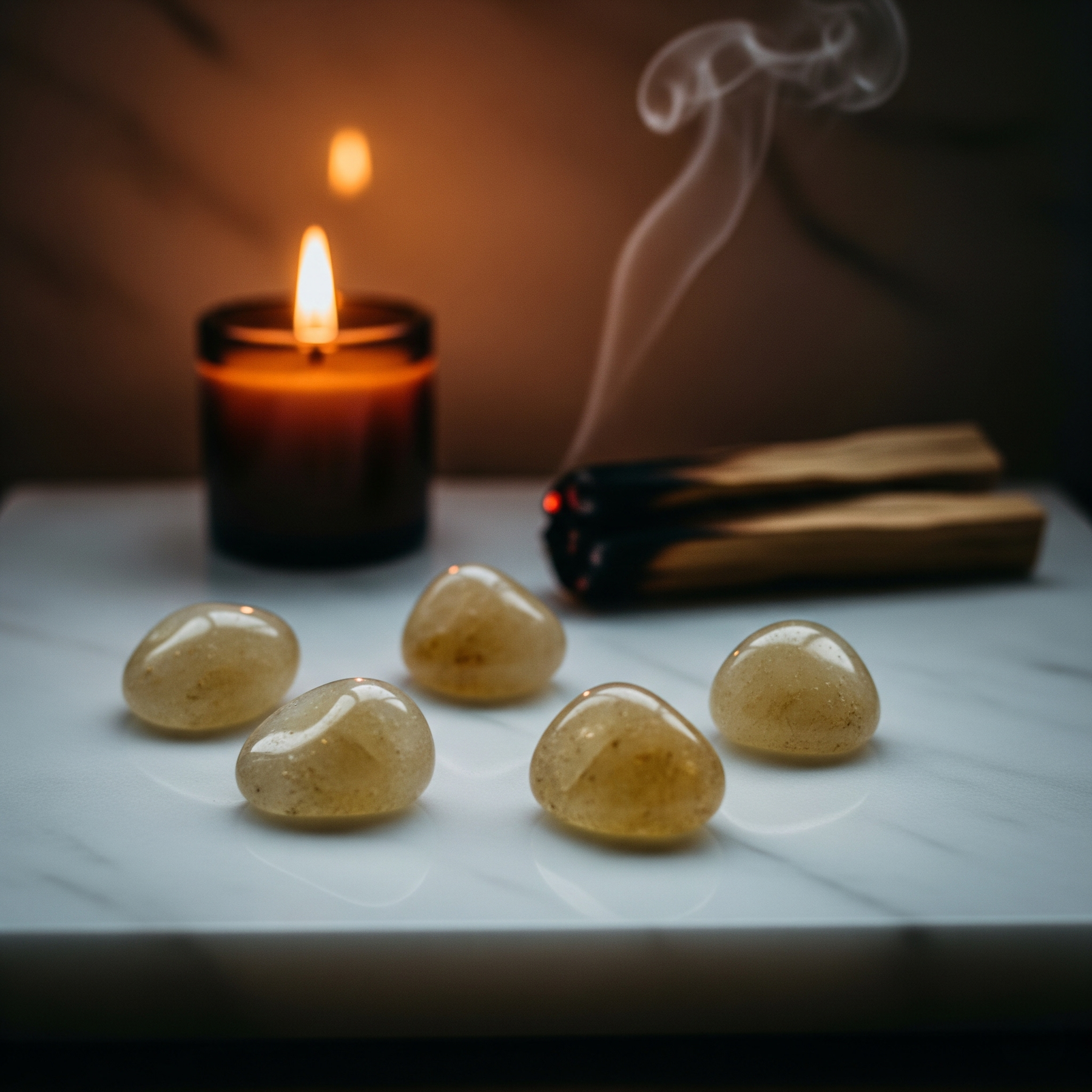 Noś kamień lub umieść go w stałym polu widzenia. Wracaj do intencji w momentach decyzyjnych. Świecę zapalaj, gdy chcesz wzmocnić efekt.