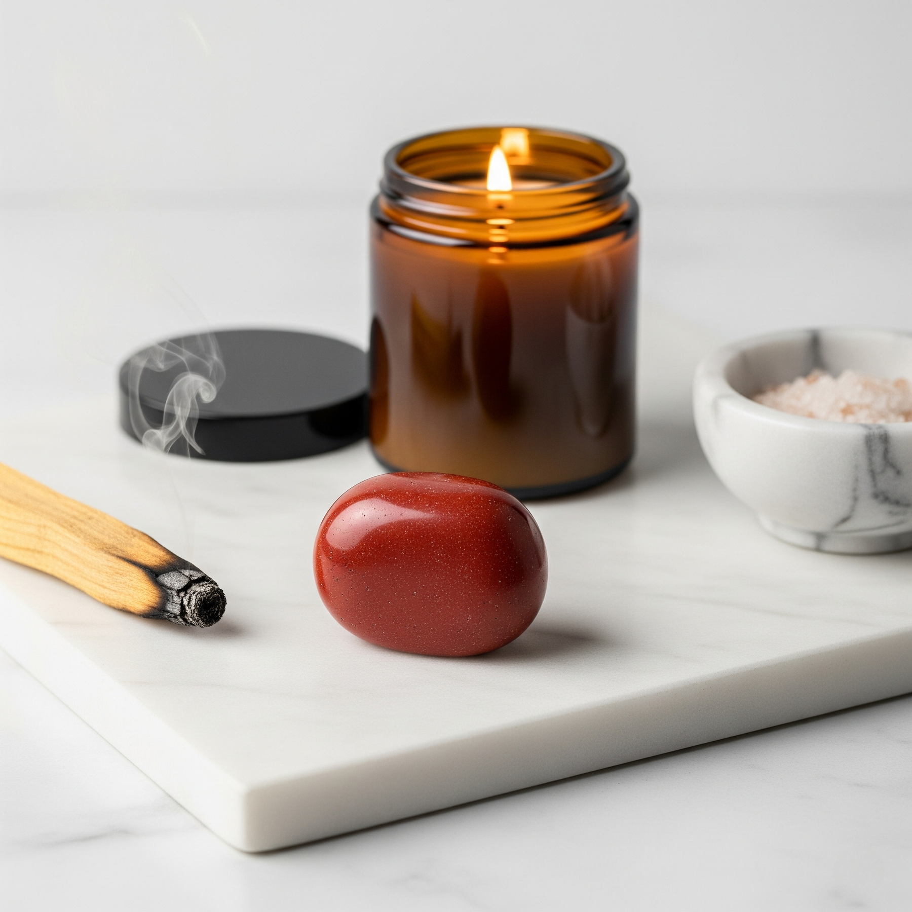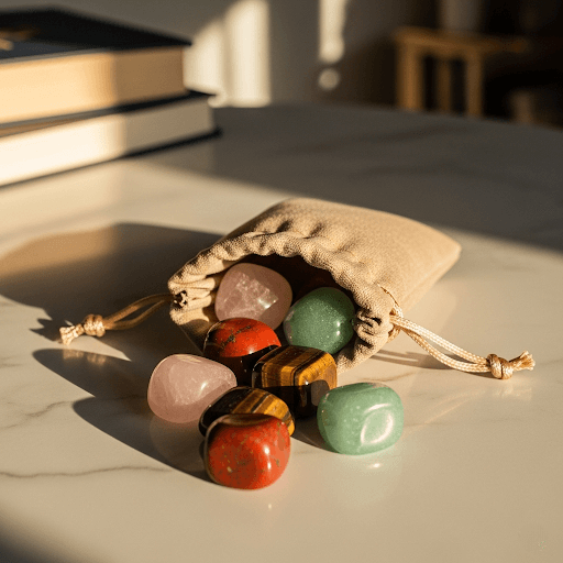 Noś kamień lub umieść go w stałym polu widzenia. Wracaj do intencji w momentach decyzyjnych. Świecę zapalaj, gdy chcesz wzmocnić efekt.