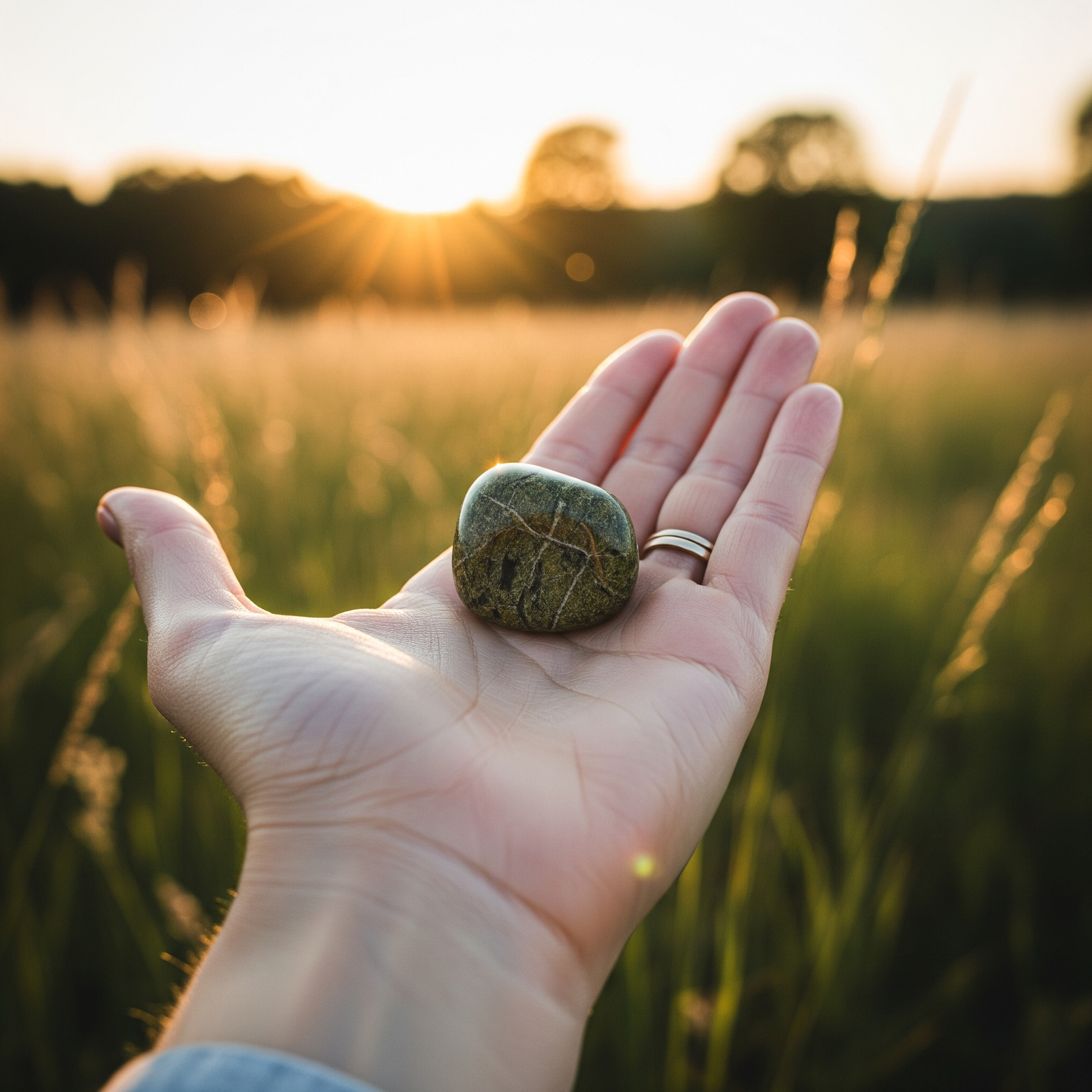 Uściśnij kamień i wypowiedz intencję wyraźnie. Trzy spokojne oddechy utrwalą przekaz.