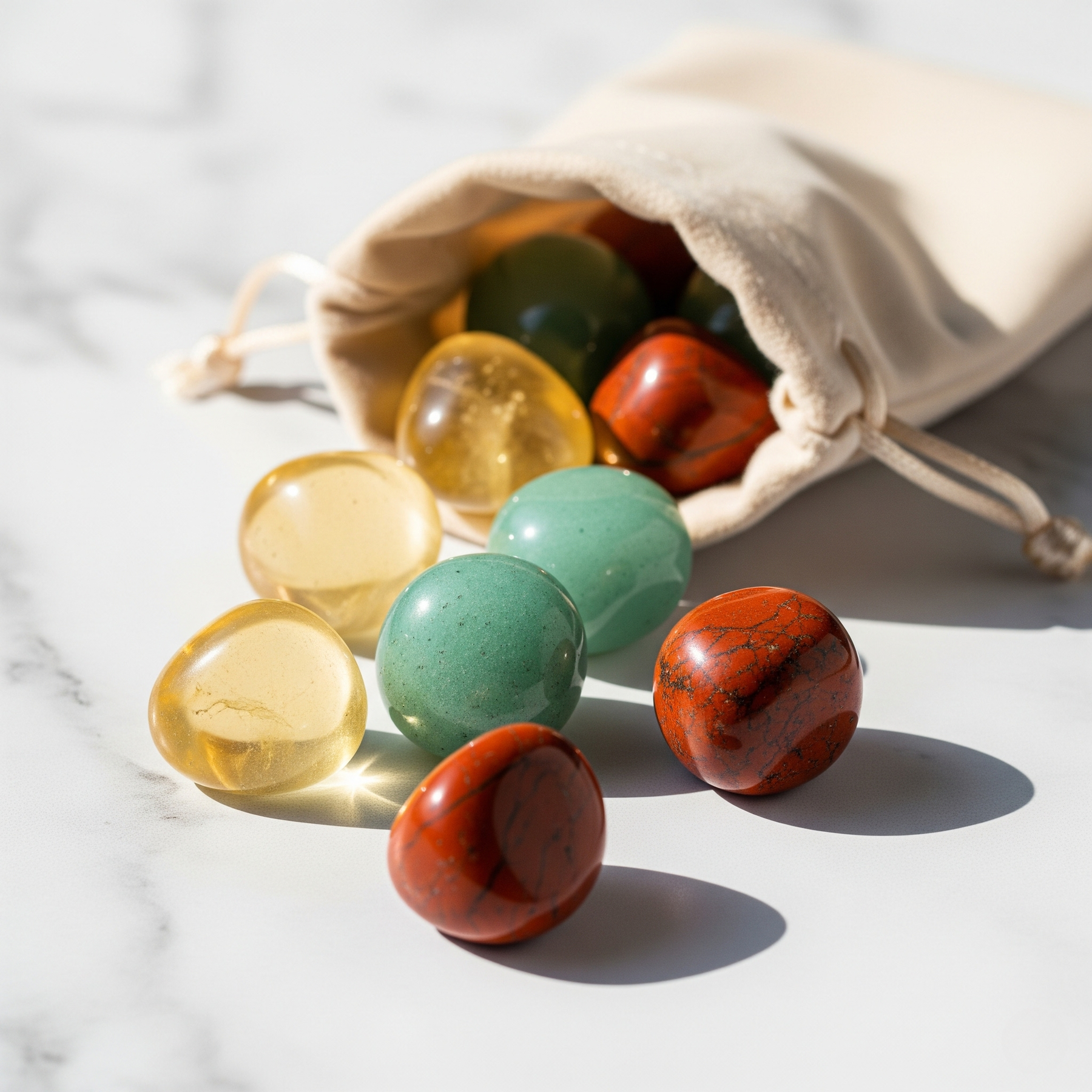Noś kamienie lub umieść go w stałym polu widzenia. Wracaj do intencji w momentach decyzyjnych. Świecę zapalaj, gdy chcesz wzmocnić efekt.
